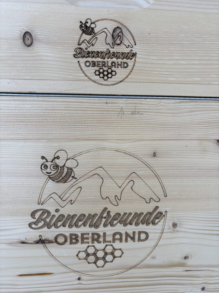Die eigene Beute wurde mit dem Loge der Bienenfreunde gelastert. So bleibt sicher gestellt, dass es keine Verwechslungen geben kann. Zu verdanken hat der Verein das Lasern einem Freund, der sich hierfür extra viel Zeit genommen ha. Flo, wir danken dir.